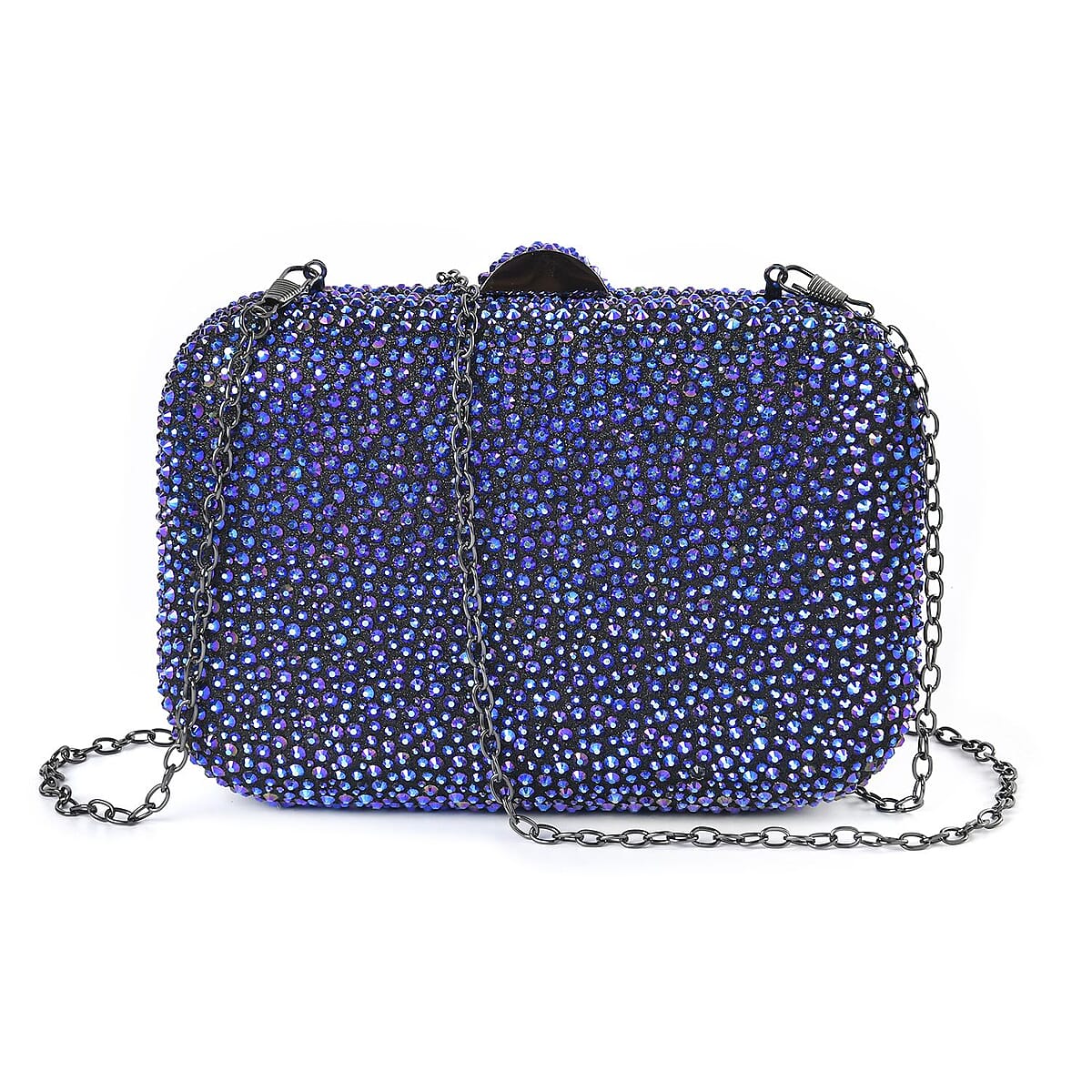 Black and Blue Color Sparkling Crystal Clutch Bag with Detachable Chain
