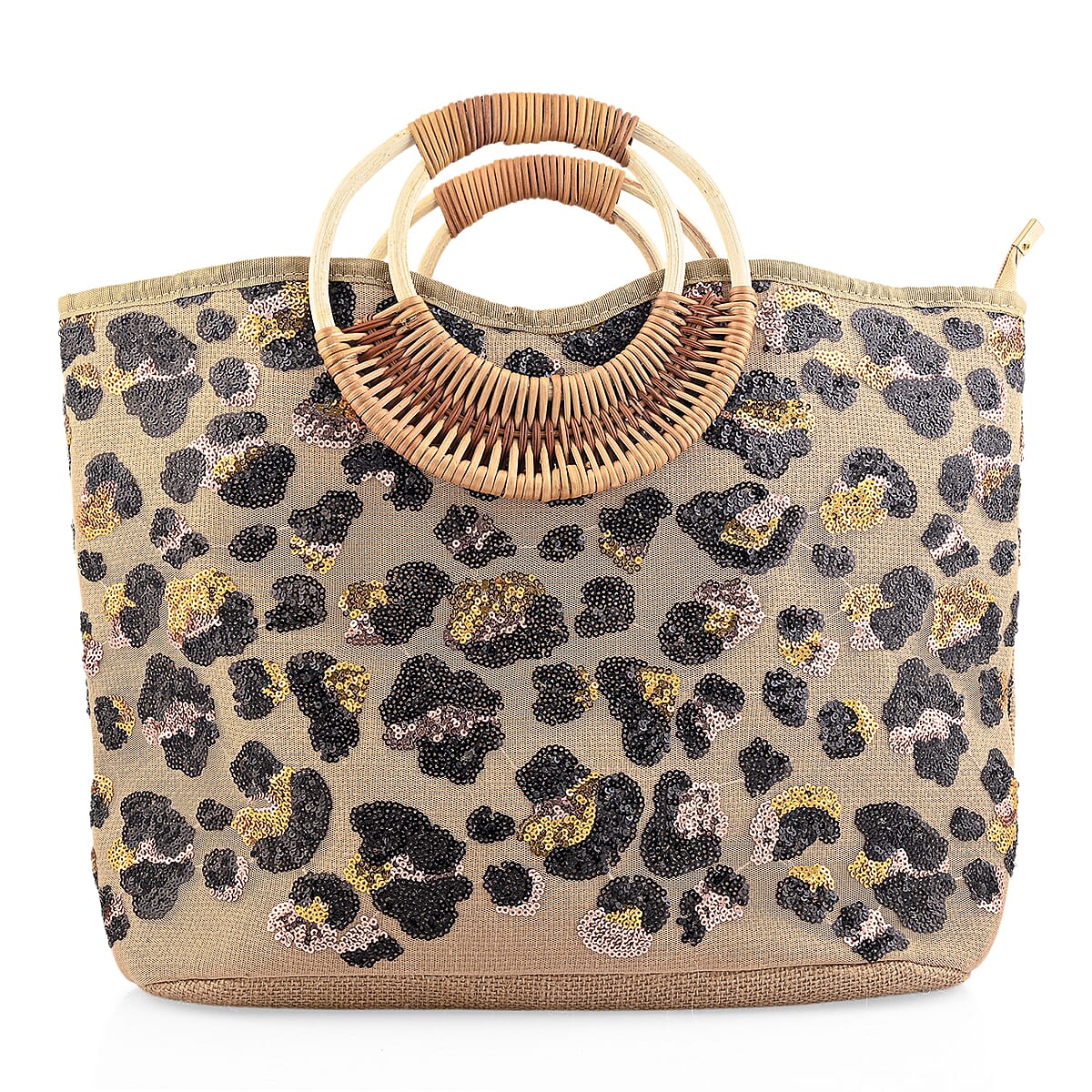Black and Gold Leopard Pattern Sequin and Polyester Tote Bag