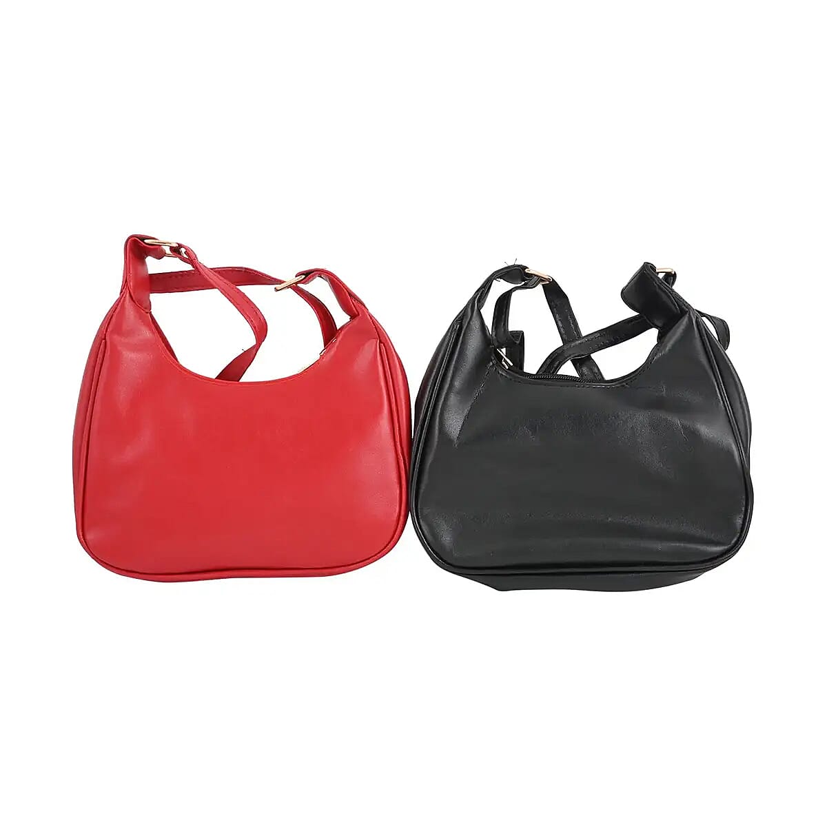 Black and Red Faux Leather Set of 2 Shoulder Bag
