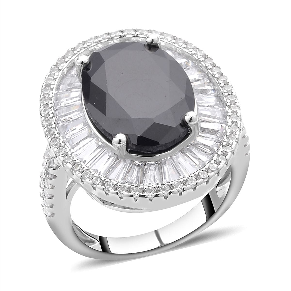 Black and White Simulated Diamond Halo Ring in Silvertone