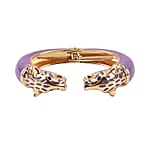 Black Austrian Crystal and Purple Enameled Bangle Bracelet in Goldtone (6.50 In)