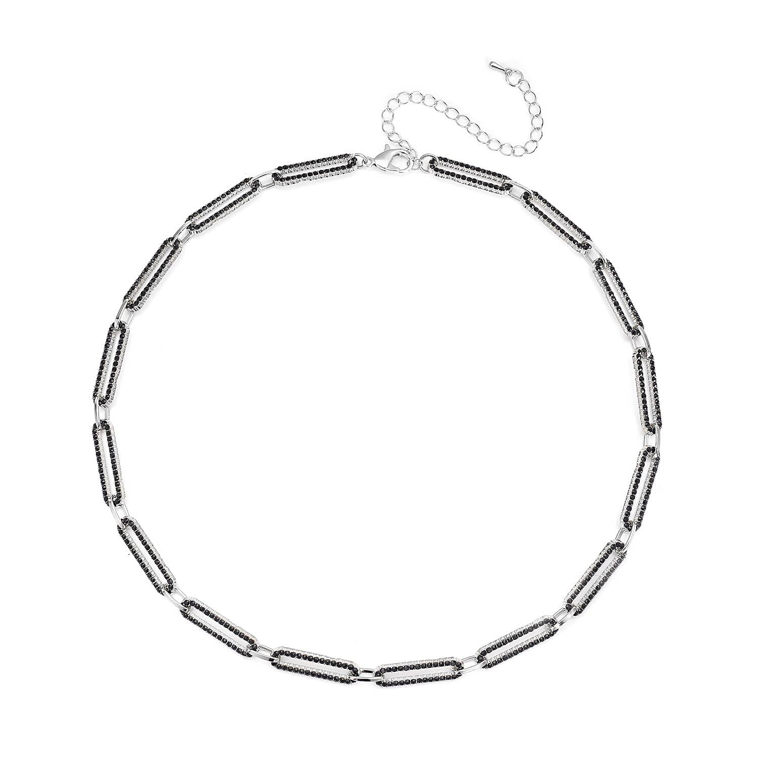 Black Austrian Crystal Paper Clip Chain Necklace in Silvertone (18-22 Inches)