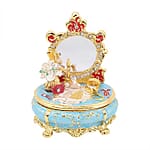 A. The box features a durable metal body, vibrant enamel detailing, and Austrian crystal embellishments.