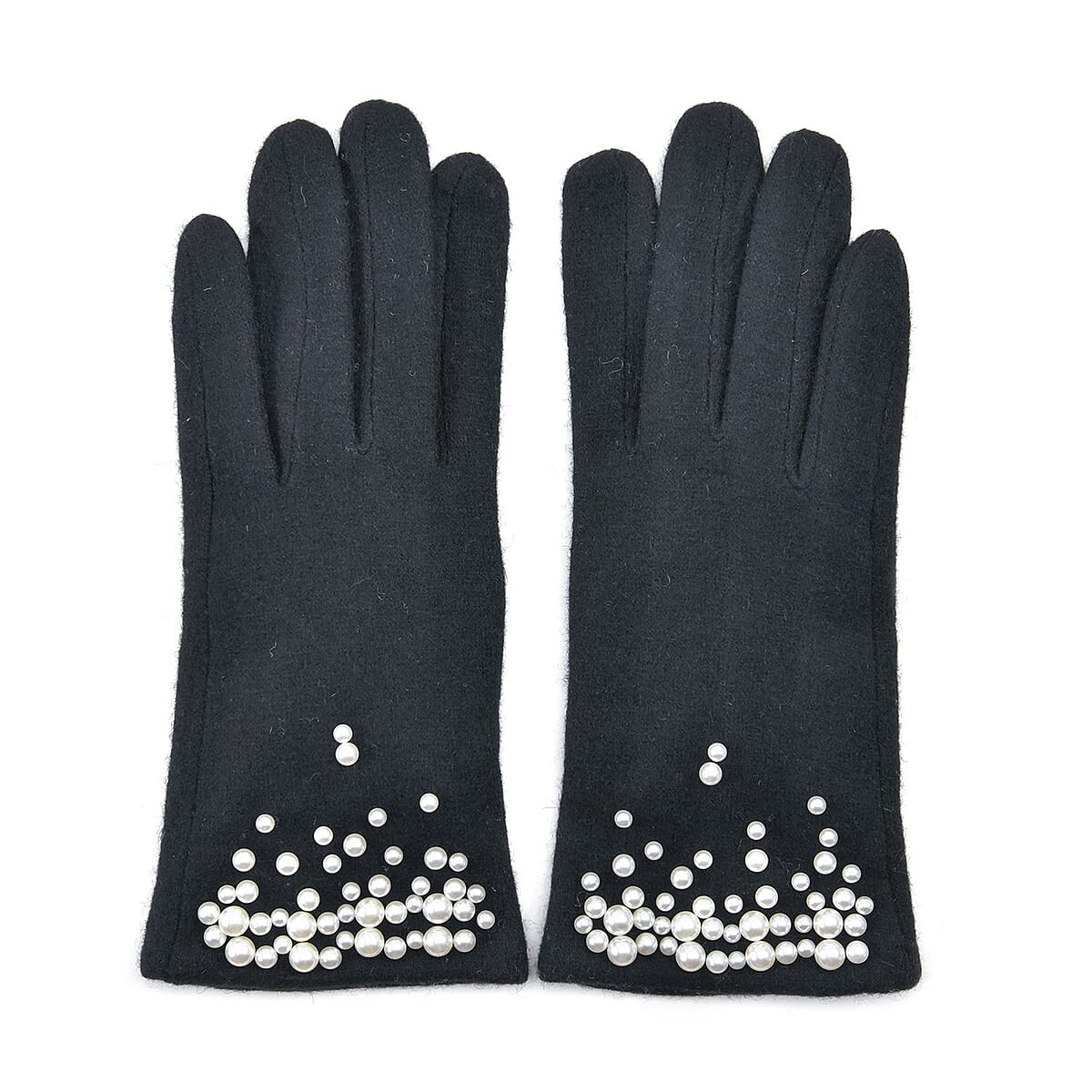 Black Cashmere Warm Gloves with Plastic Pearl and Equipped Touch Screen Friendly