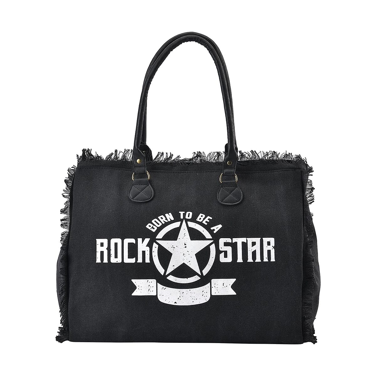 Black Color Canvas Tote Bag with Faux Leather Handle Strap