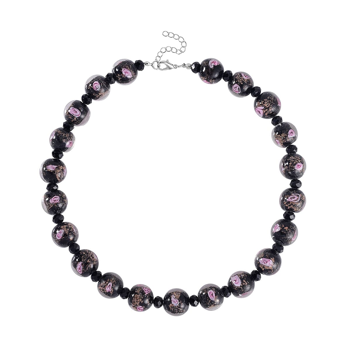 Black Color Murano Style and Black Glass Beaded Necklace 20-22 Inches in Silvertone