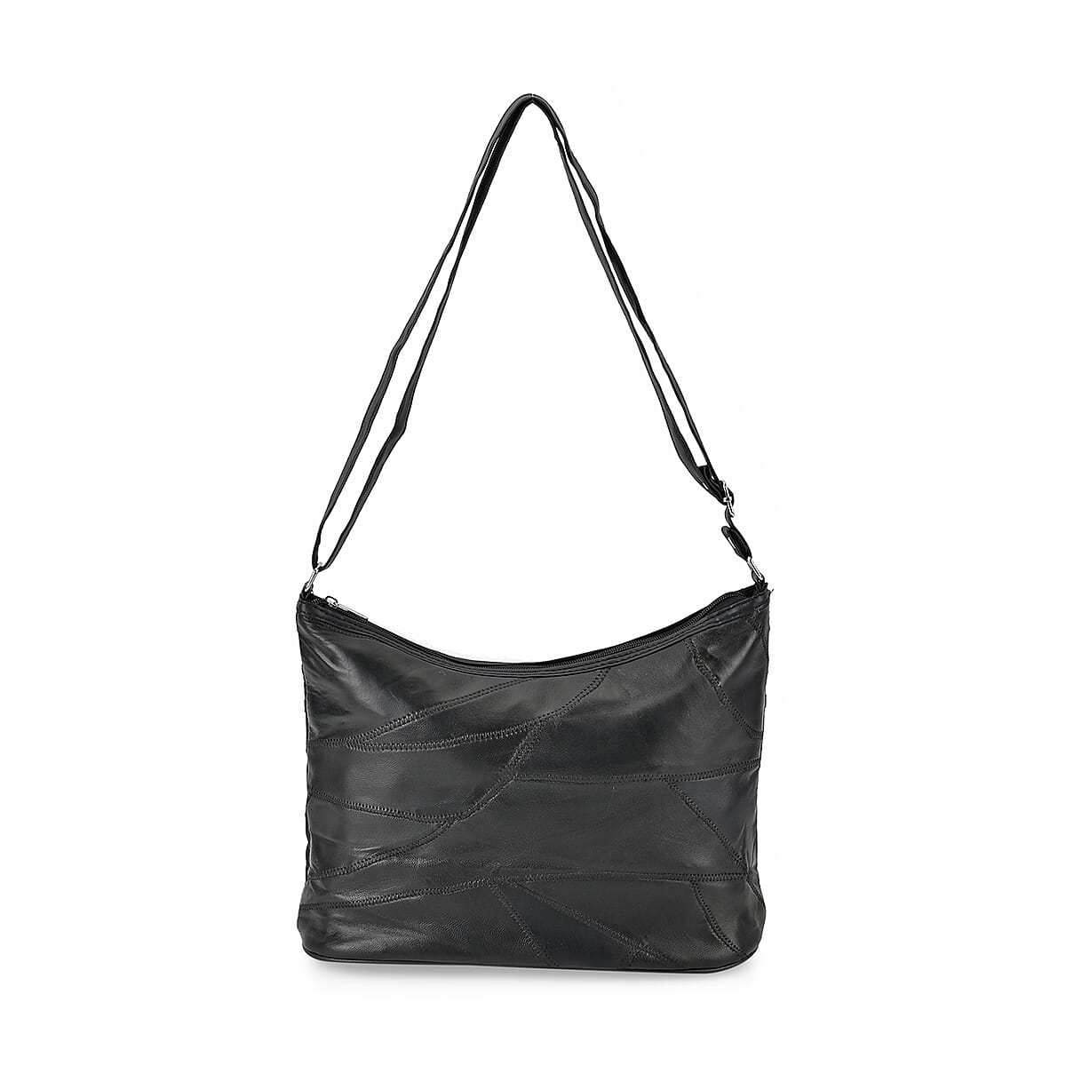 Black Color Patch Work Sheep Leather Crossbody Bag (12"x9.5"x4'') with Adjustable Shoulder Strap