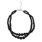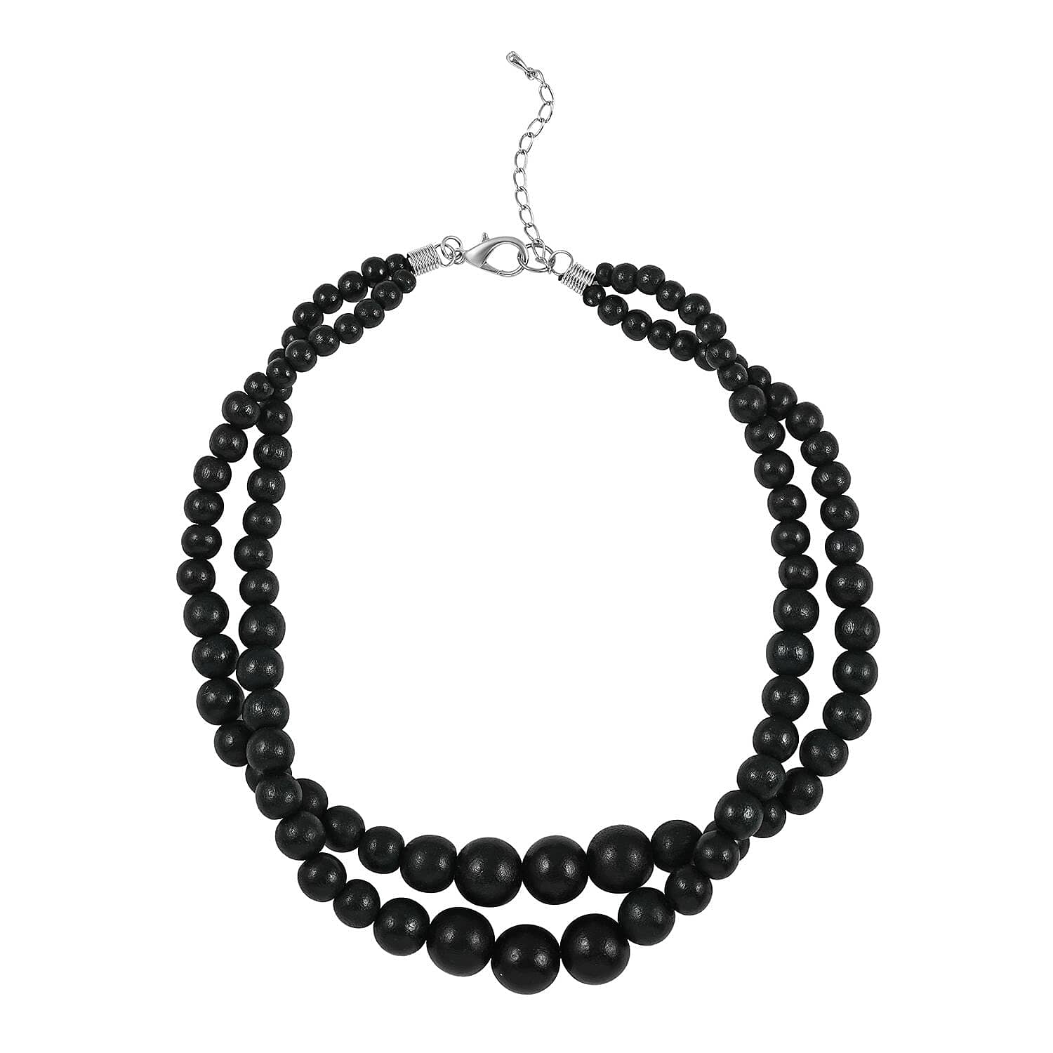 Black Color Wooden Beaded Double Row Necklace (18-20 Inches) in Stainless Steel , Tarnish-Free, Waterproof, Sweat Proof Jewelry