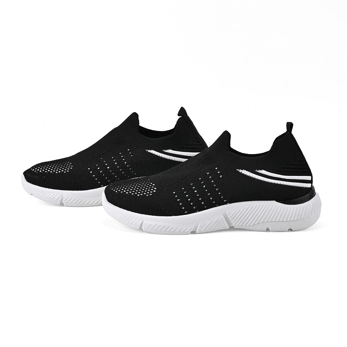 Black Comfortable Lightweight Slip-On Women Trainers Shoes With Breathable Knit Vent Non-Slip PVC Sole, All Day Casual Wear Stylish Sneakers (10-10.5 / 40)