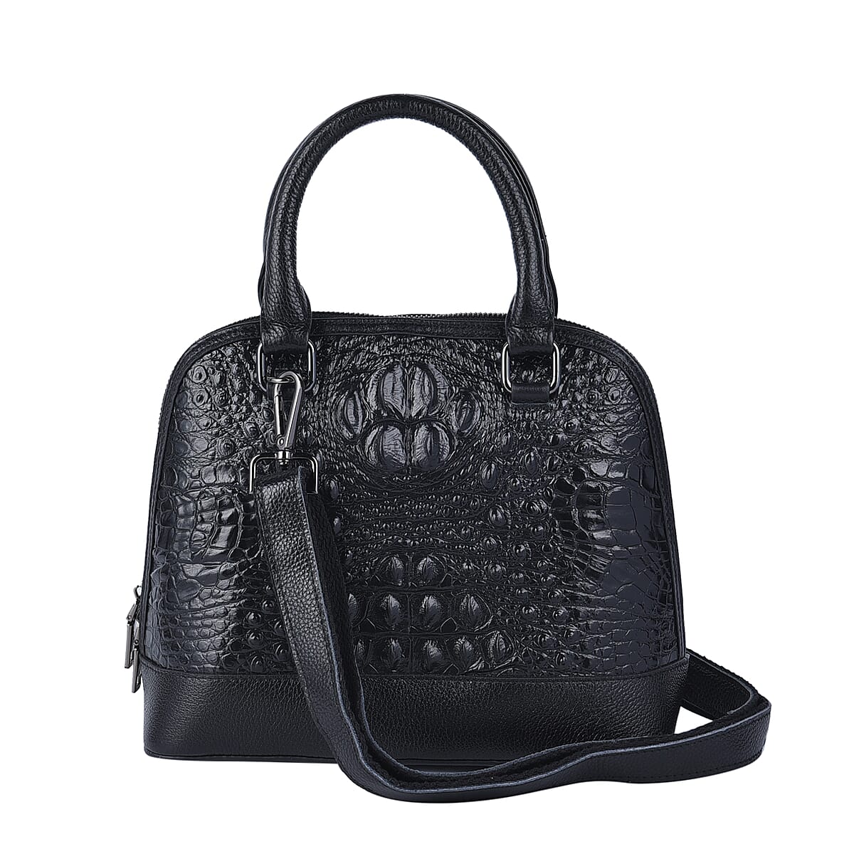Black Crocodile Skin Pattern Inspired Half Moon Shape Genuine Leather Convertible Bag (10"x4.75"x8")
