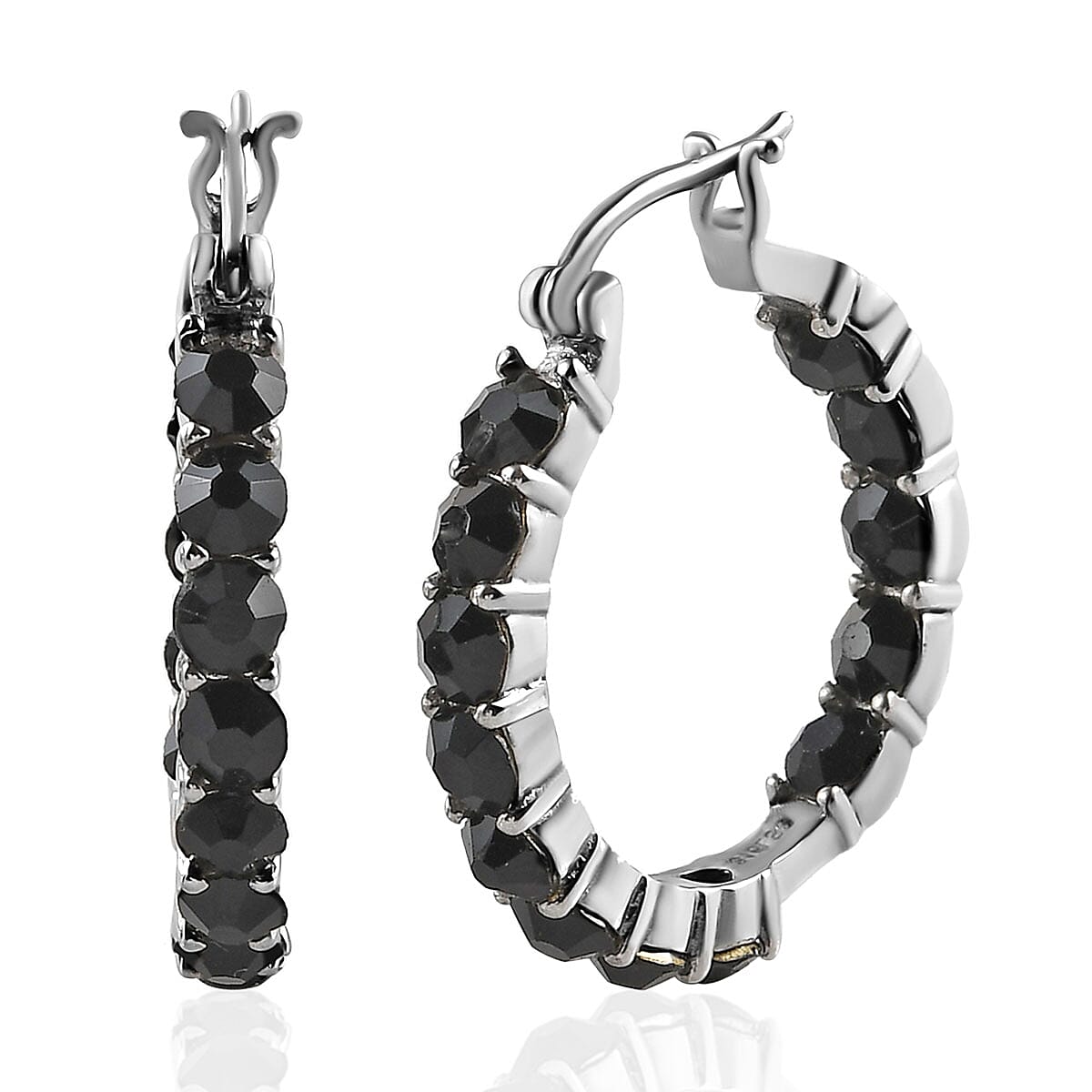 Black Crystal Hoop Earrings in Stainless Steel , Tarnish-Free, Waterproof, Sweat Proof Jewelry