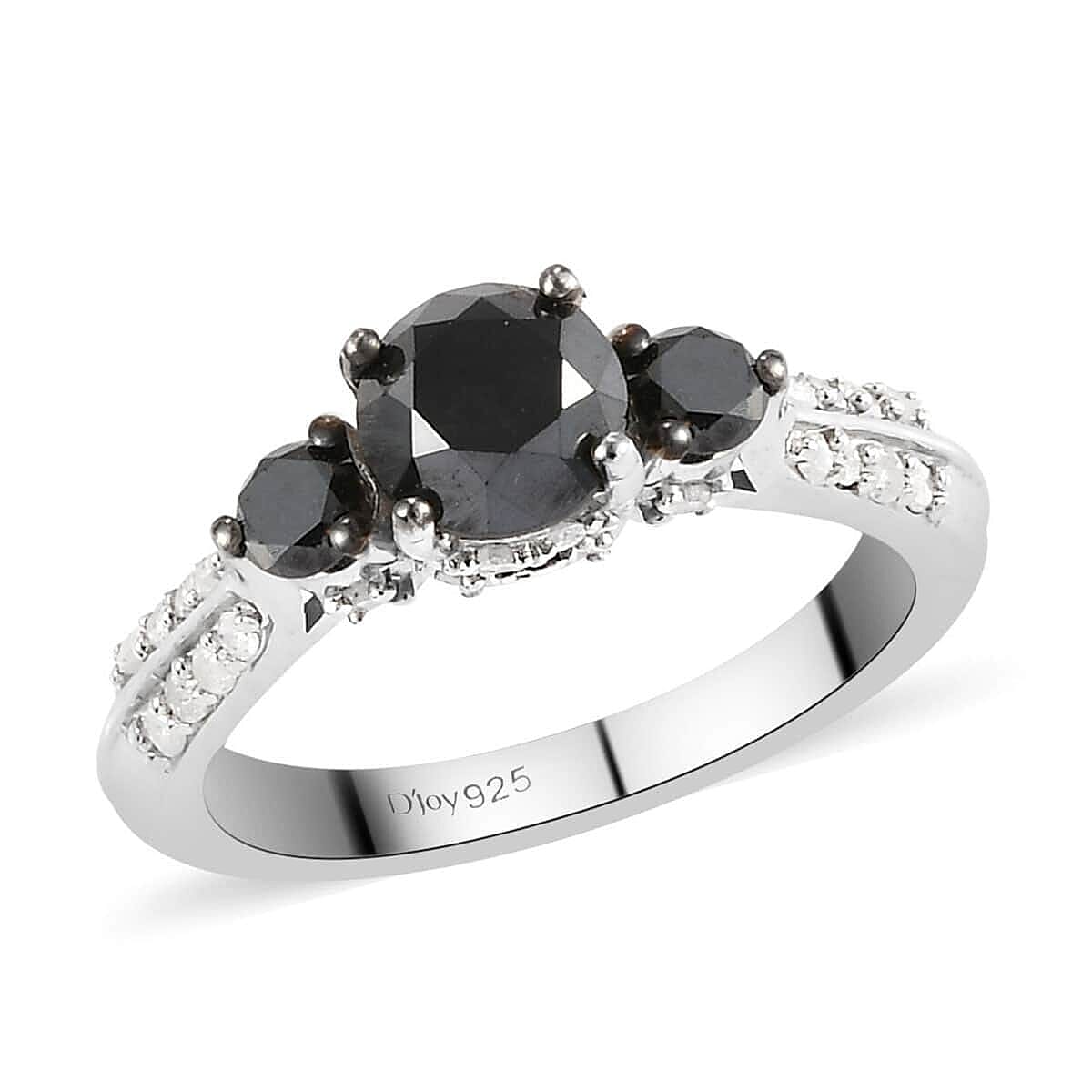 Black Diamond and Diamond Ring in Platinum Over Sterling Silver (Size 6.0) 1.50 ctw