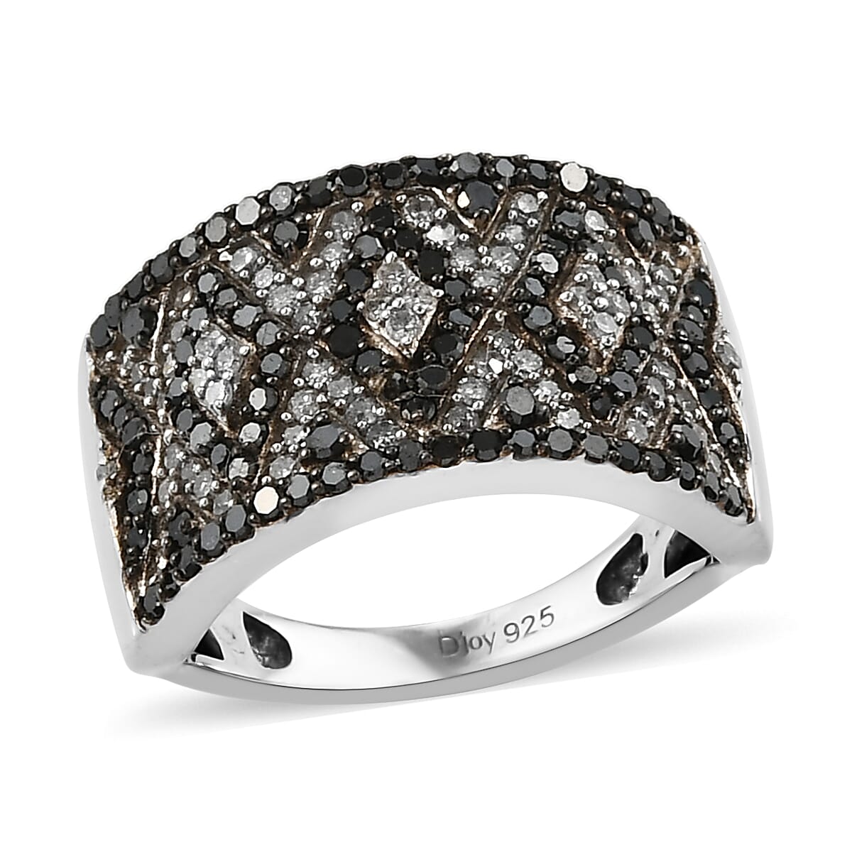 Black Diamond and Diamond Ring in Rhodium and Platinum Over Sterling Silver (Size 10.0) 1.00 ctw