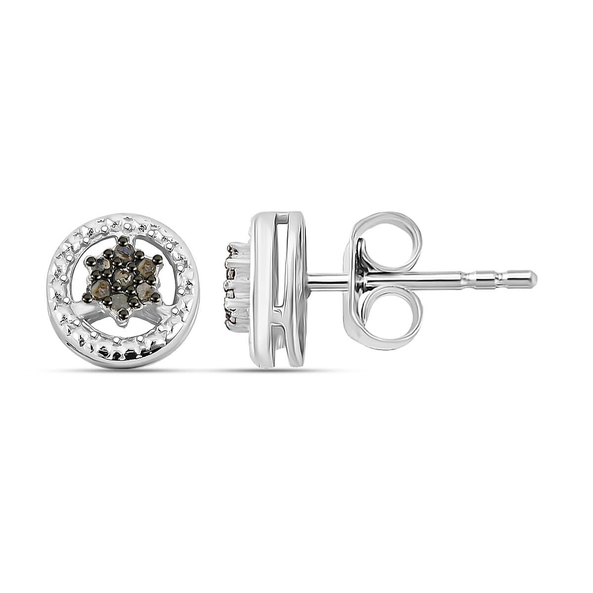 Black Diamond (IR) 0.10 ctw Stud Earrings in Rhodium Over Sterling Silver