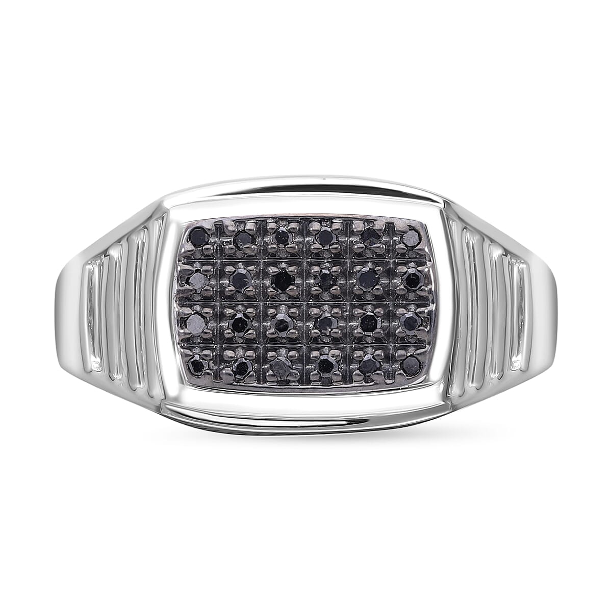 Black Diamond Men's Ring in Platinum Over Sterling Silver (Size 11.0) 0.10 ctw