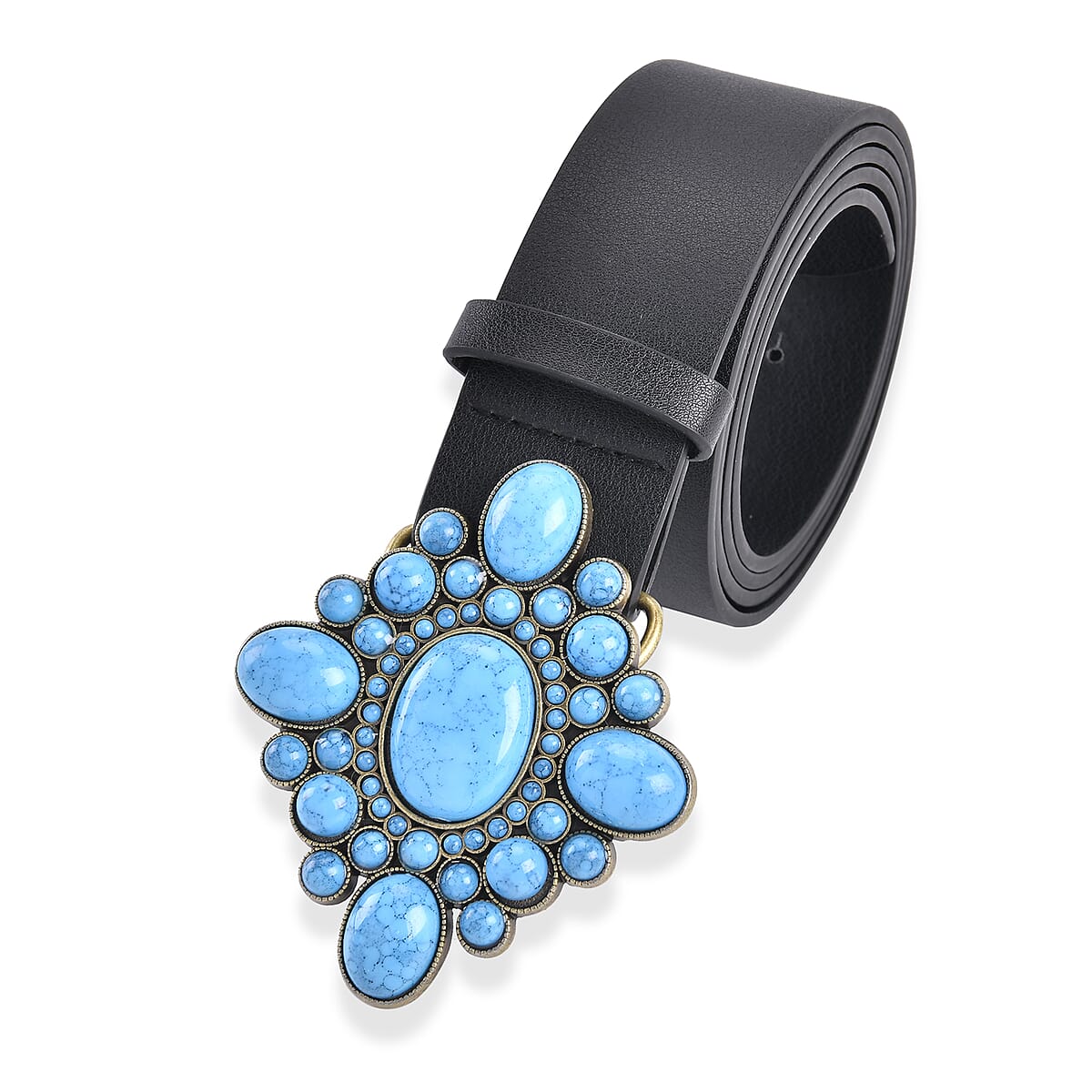 Black Faux Leather Buckle Belt with Kallaite Stone (47.20)