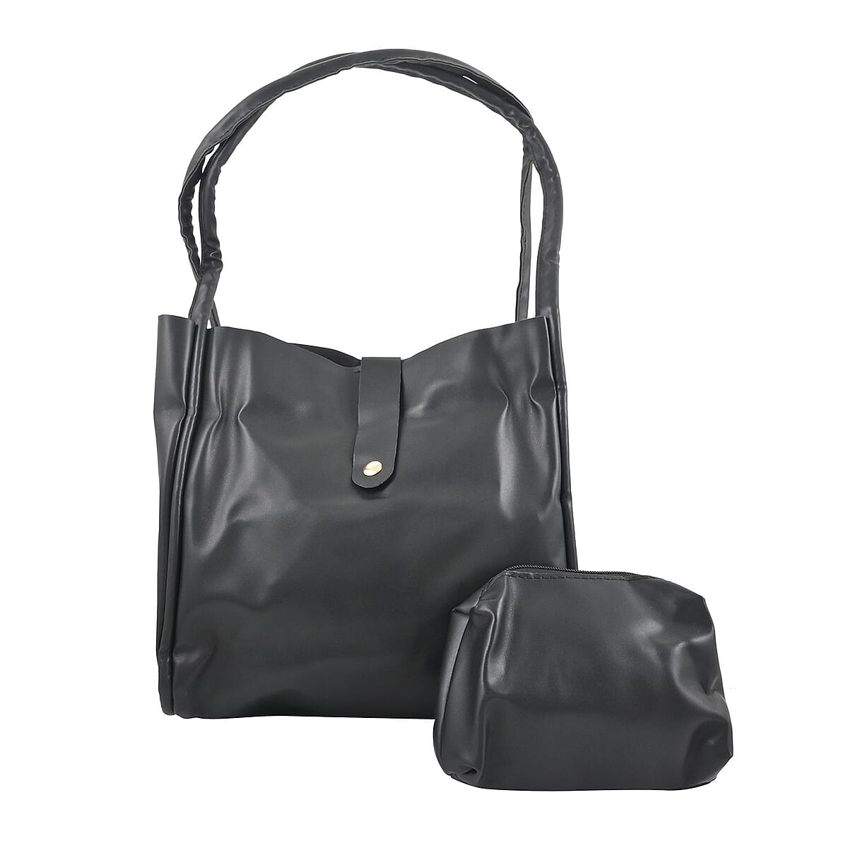 Black Faux Leather Tote Bag (15.35"x10.24"x3.94") and Purse (7.09"x5.12"x 1.97")