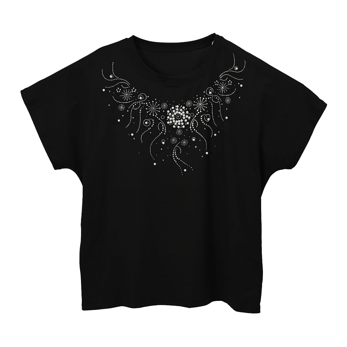 Black Floral Crystal Bejeweled Bat Wing Short Sleeve Shirt - One Size Fits Most