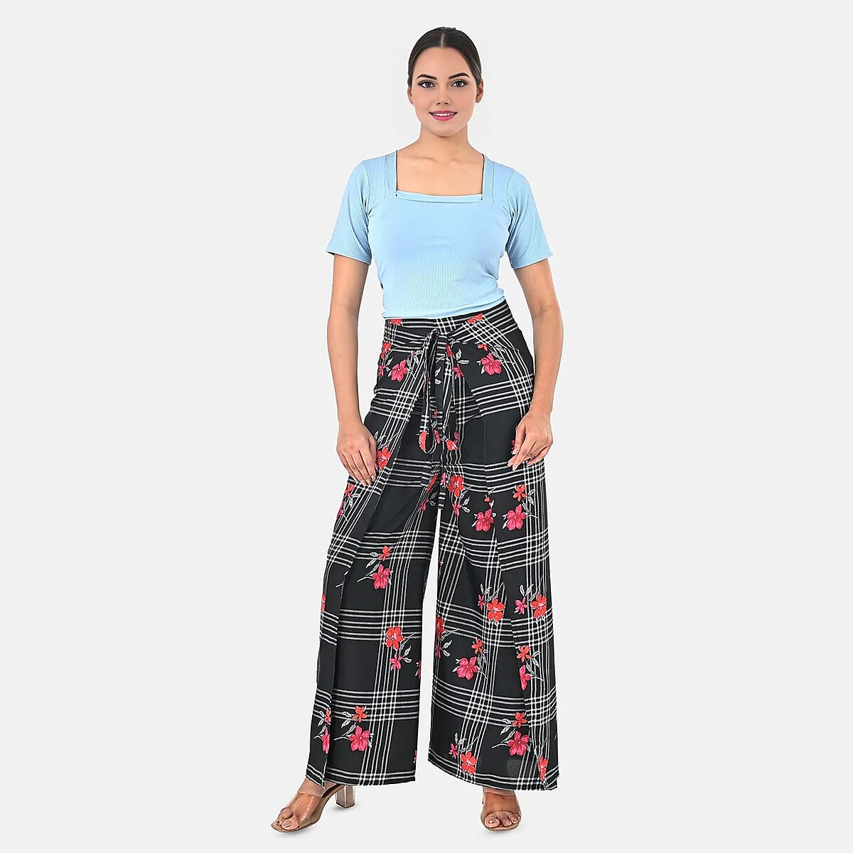 Black Floral Printed Boho Wrap Pants - One Size Fits Most
