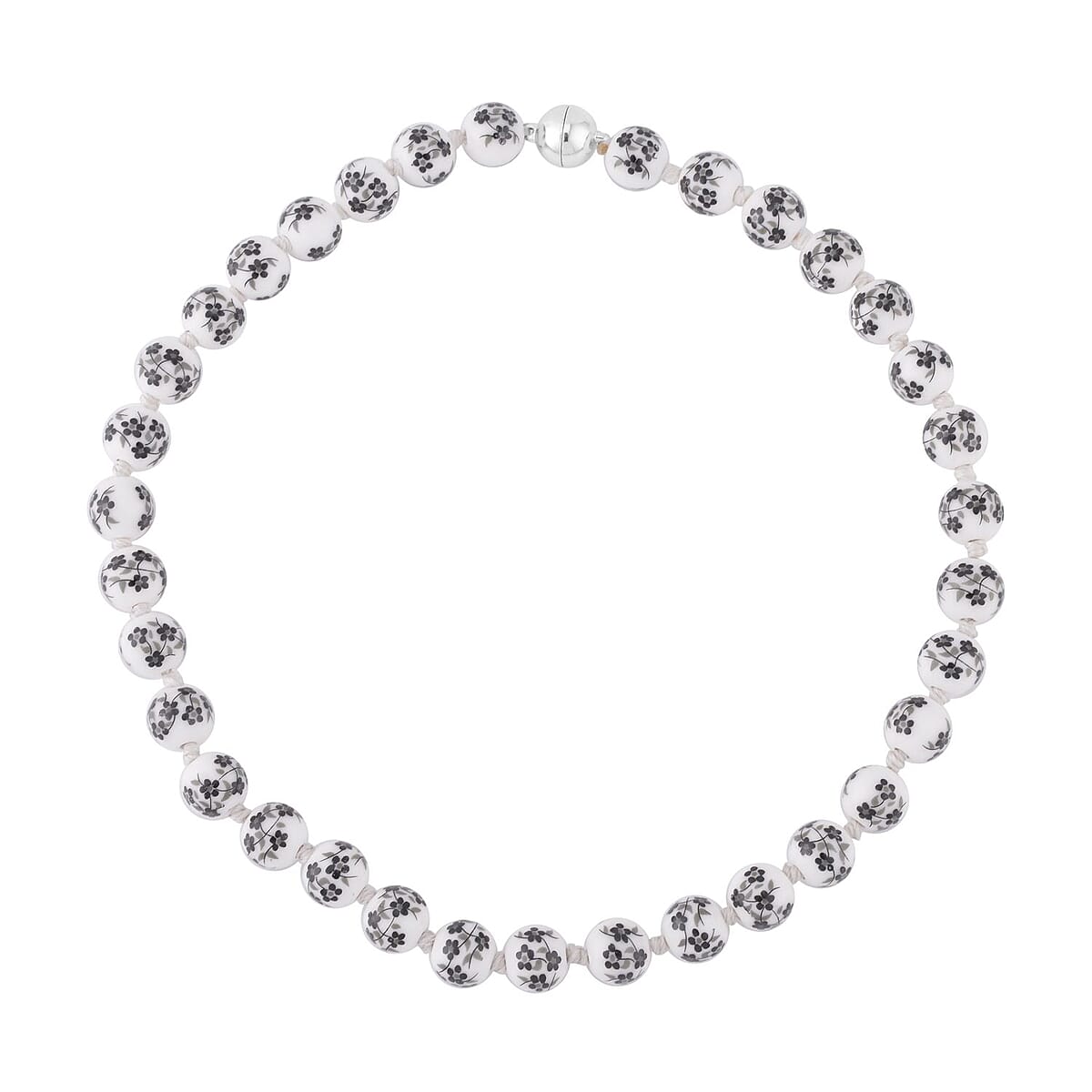 Black Flower Ceramic Beaded Knotted Necklace 20 Inches in Silvertone