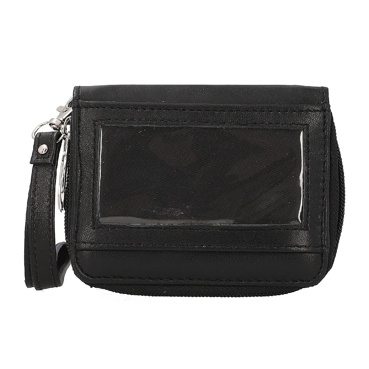 Black Genuine Leather RFID Protected Card Holder with Dual Zipper Closure & Removable Wristlet Handle