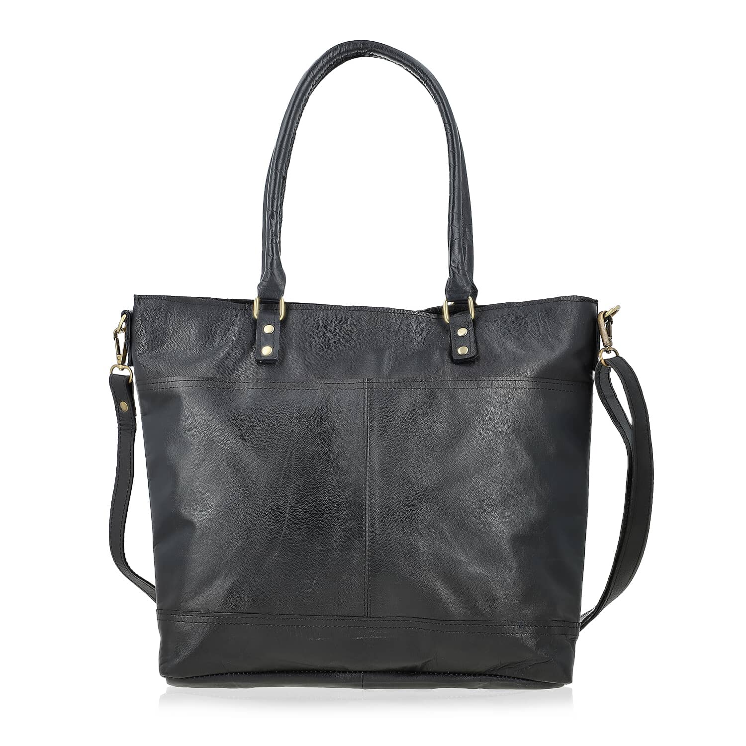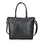 Black Genuine Leather RFID Protected Tote Bag with Adjustable Detachable Shoulder Strap