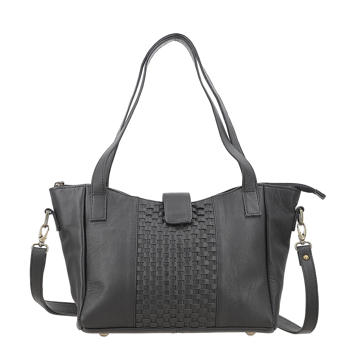 Black Genuine Leather Weave Pattern Shoulder Bag