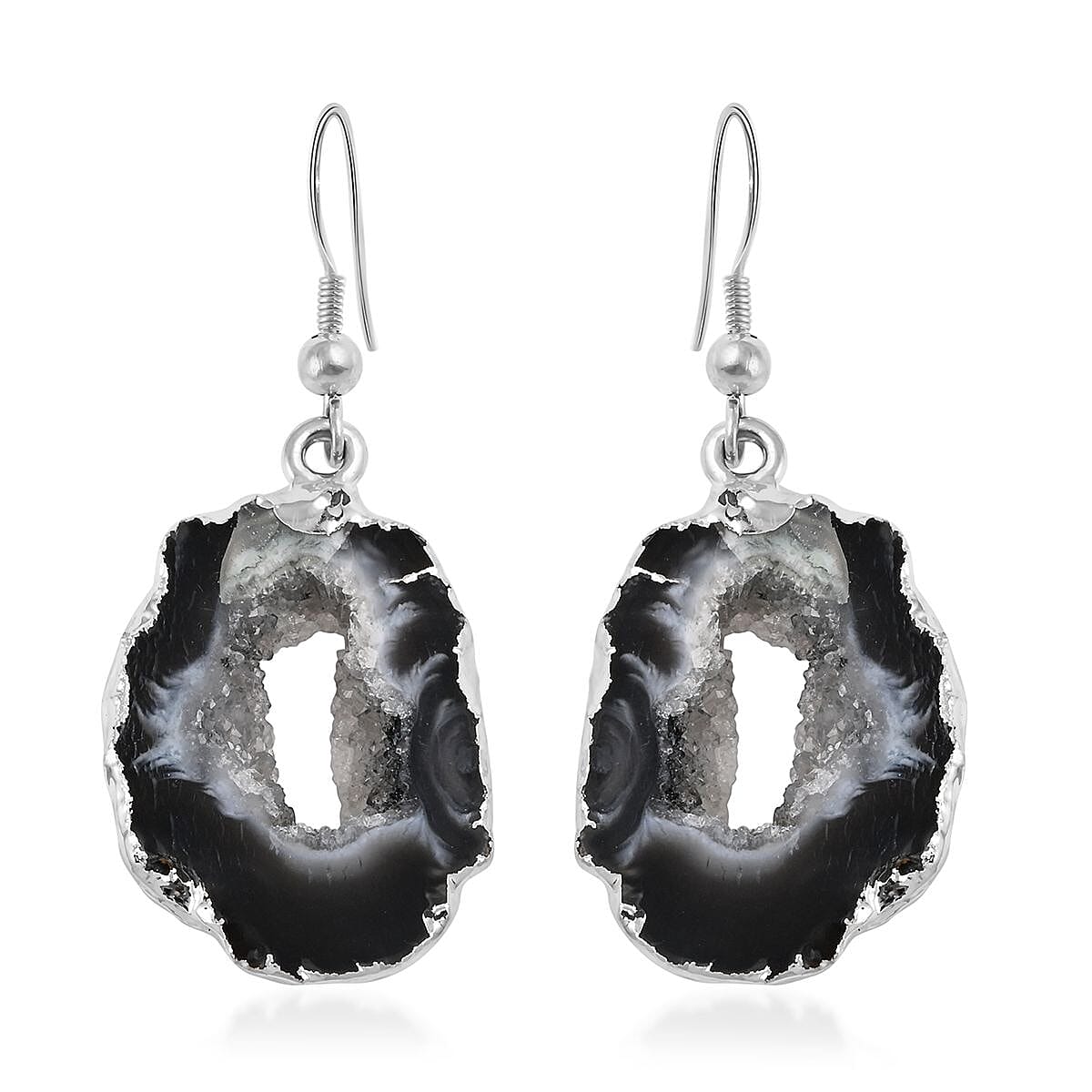 Black Geode Slice Earrings in Silvertone 28.80 ctw