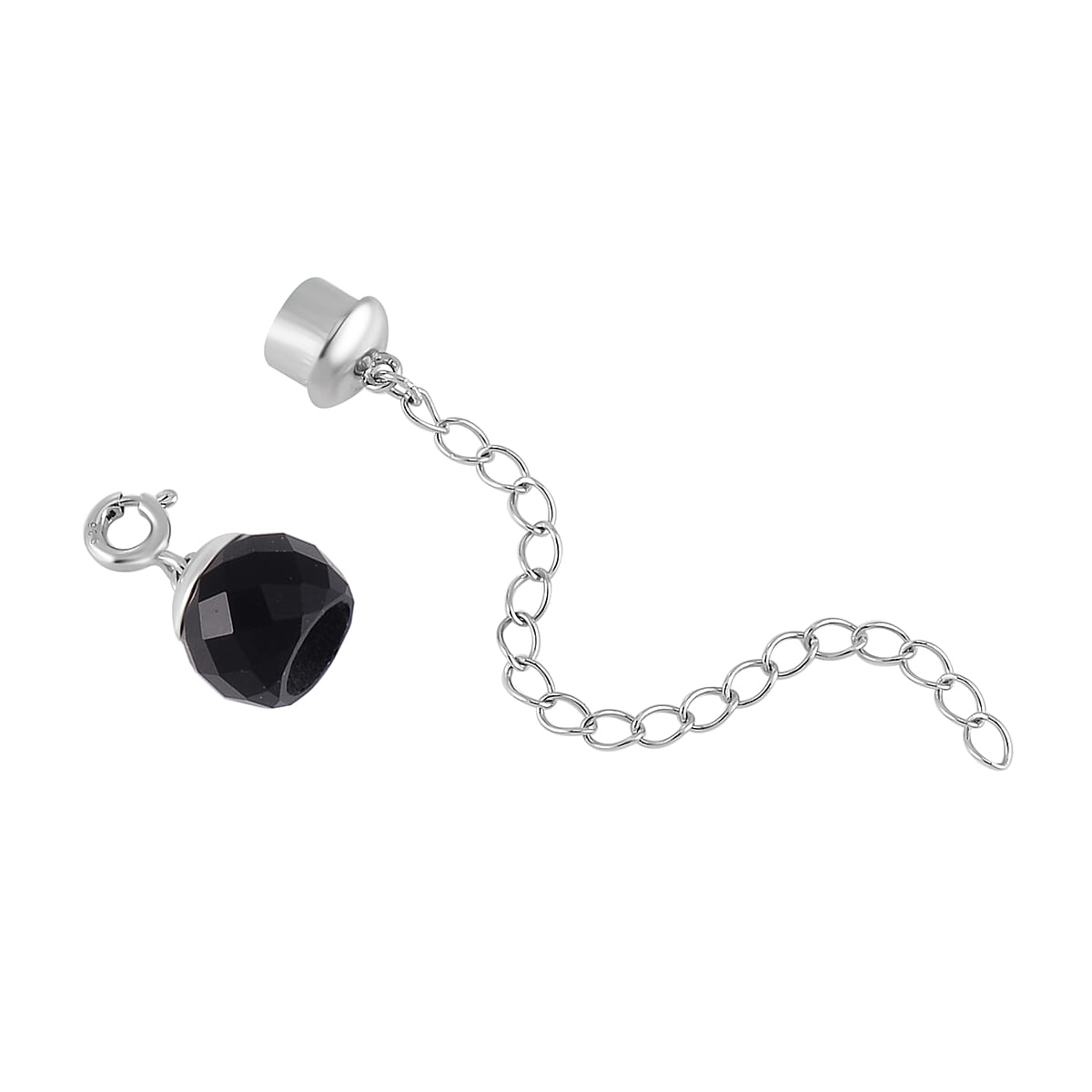 Black Glass Magnetic Lock 2Inch Extender Chain with 5mm Ring Lock in Rhodium Over Sterling Silver