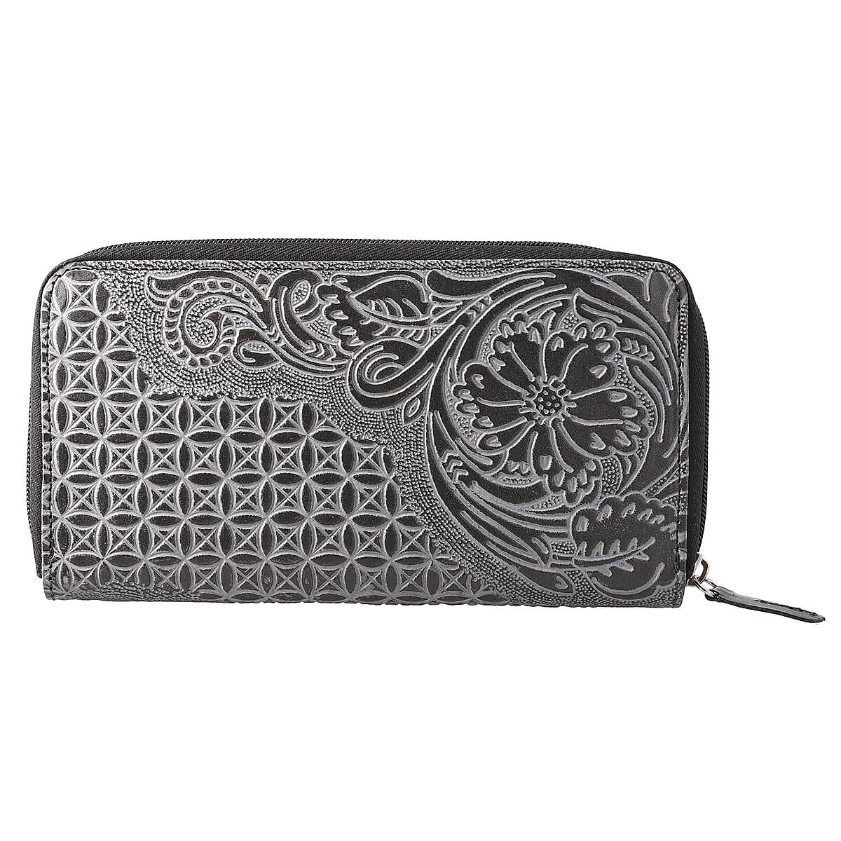 Black Hand Floral Embossed Genuine Leather RFID Women's Wallet