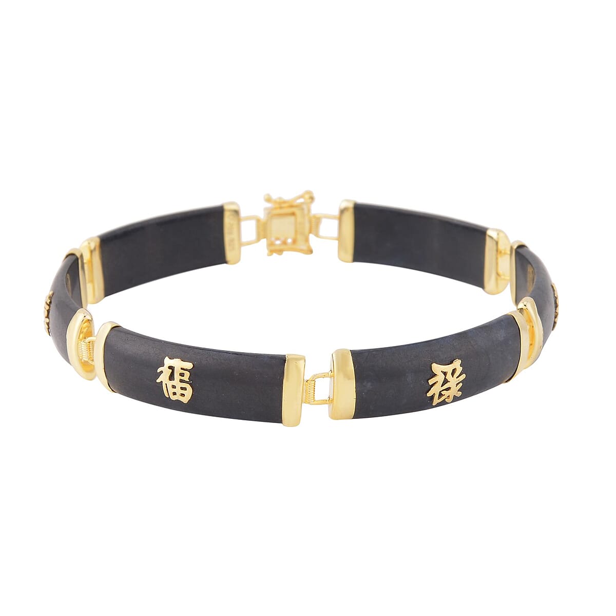 Black Jade (D) Station Bracelet , Black Jade Bracelet , 14K Yellow Gold Over Sterling Silver Bracelet , Symbols Bracelet , Silver Station Bracelet (6.00 In) 60.00 ctw