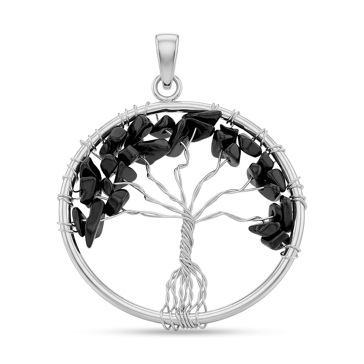 Black Obsidian 5.25 ctw Tree of Life Pendant in Silvertone with Stainless Steel Necklace (20 Inches)