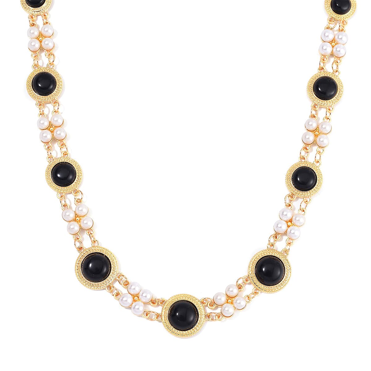 Black Obsidian and White Shell Pearl Choker Necklace 18-20 Inches in Goldtone 59.00 ctw