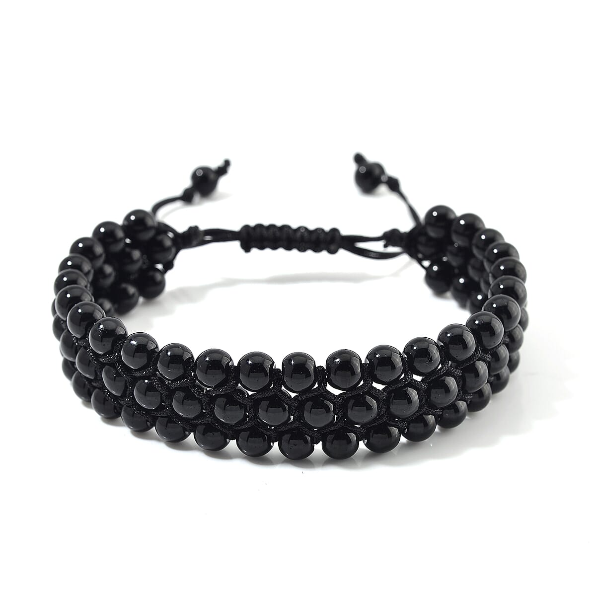 Black Obsidian Beaded 140 ctw Three- Row Bracelet (6-9In)