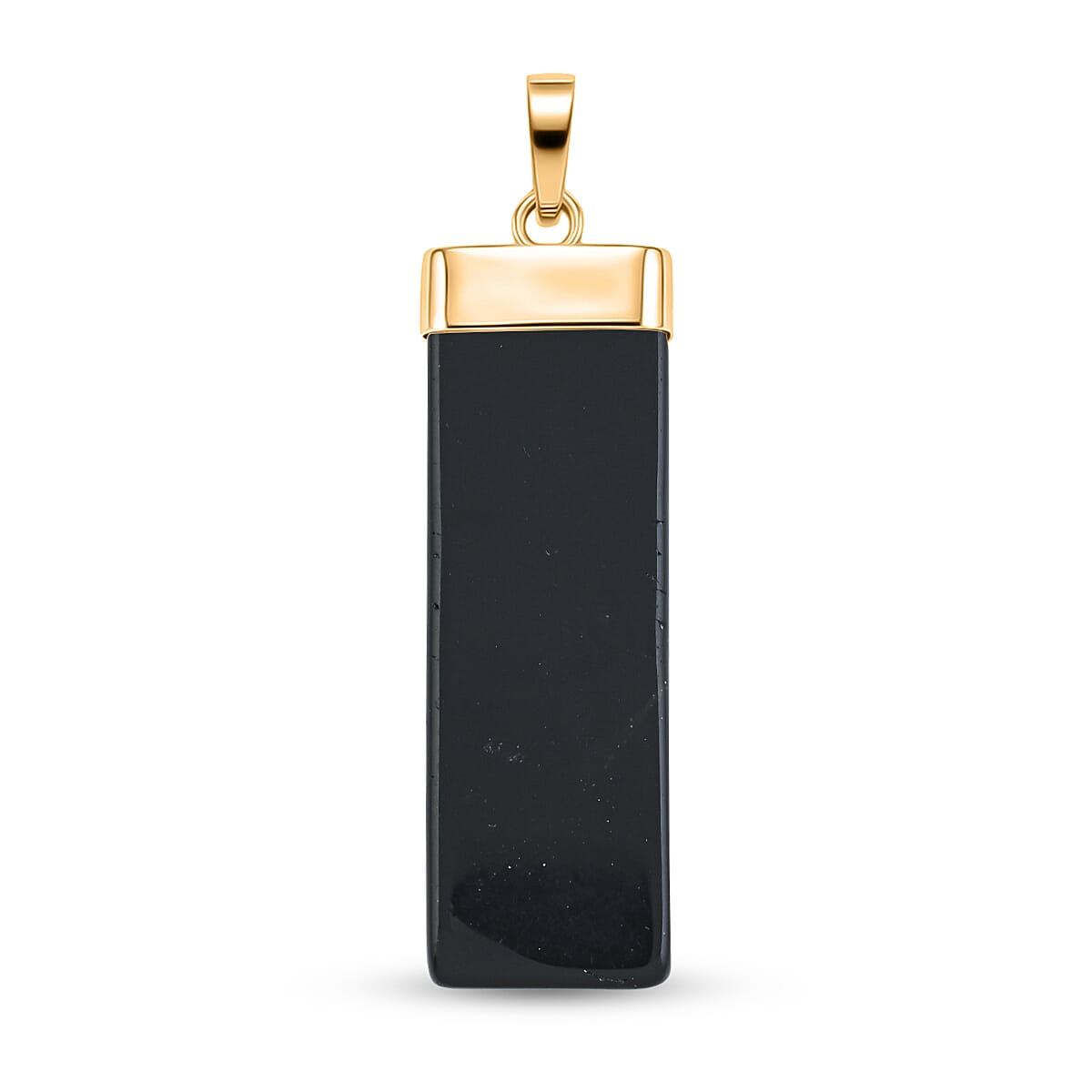 Black Onyx 36.00 ctw Rectangle Pendant in Goldtone with Stainless Steel Necklace 20 Inches
