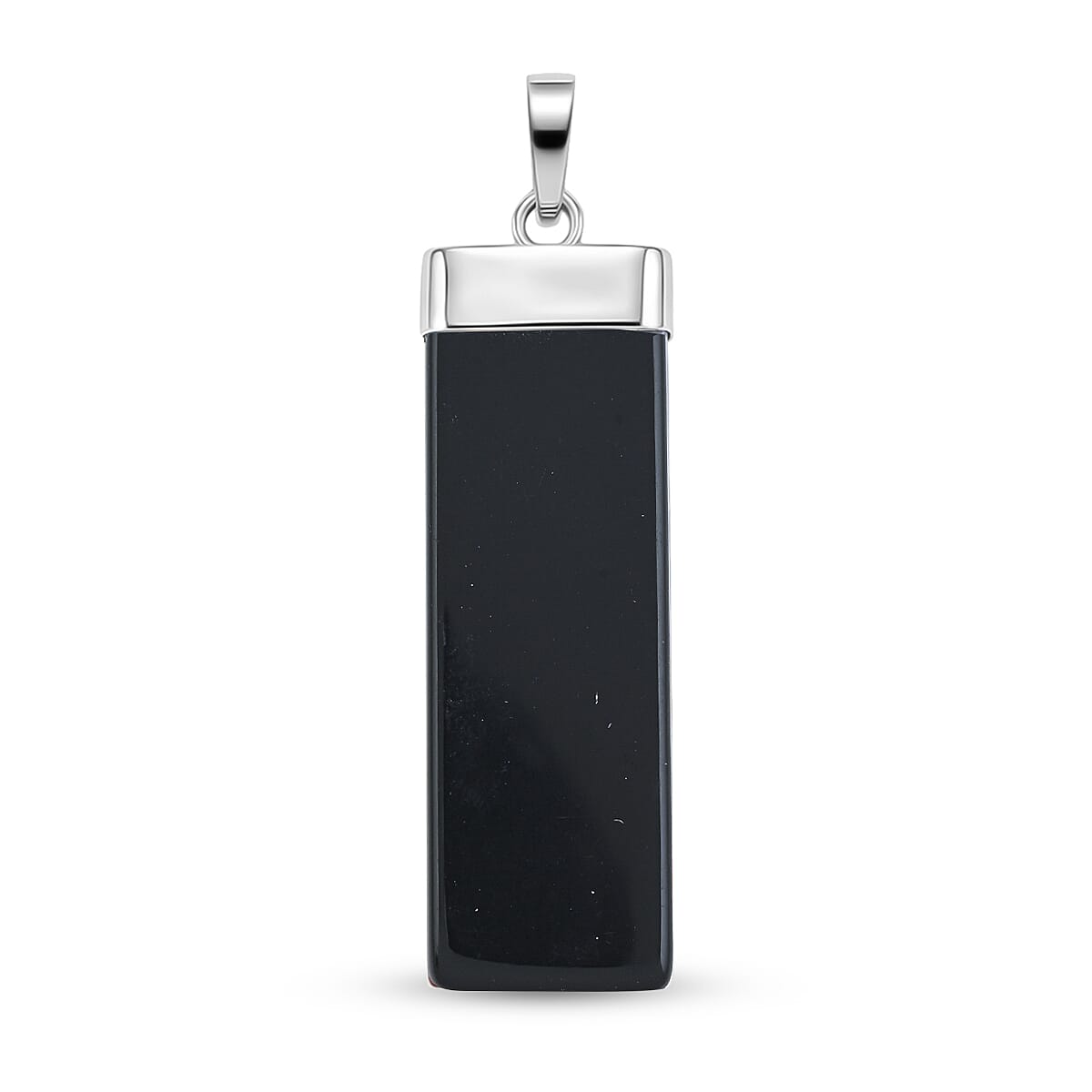 Black Onyx 36.00 ctw Rectangle Pendant in Silvertone with Stainless Steel Necklace 20 Inches
