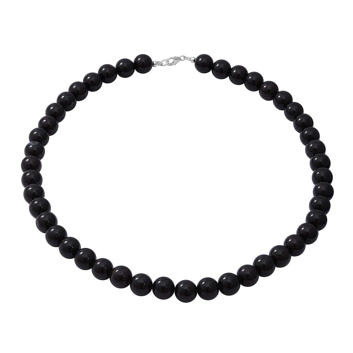 Black Onyx Beaded Necklace 18 Inches in Sterling Silver 250.00 ctw