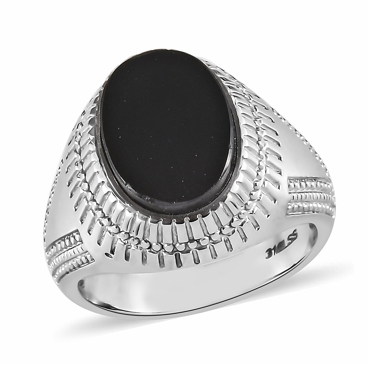 Black Onyx Solitaire Ring in Stainless Steel (Size 10.0) 4.35 ctw