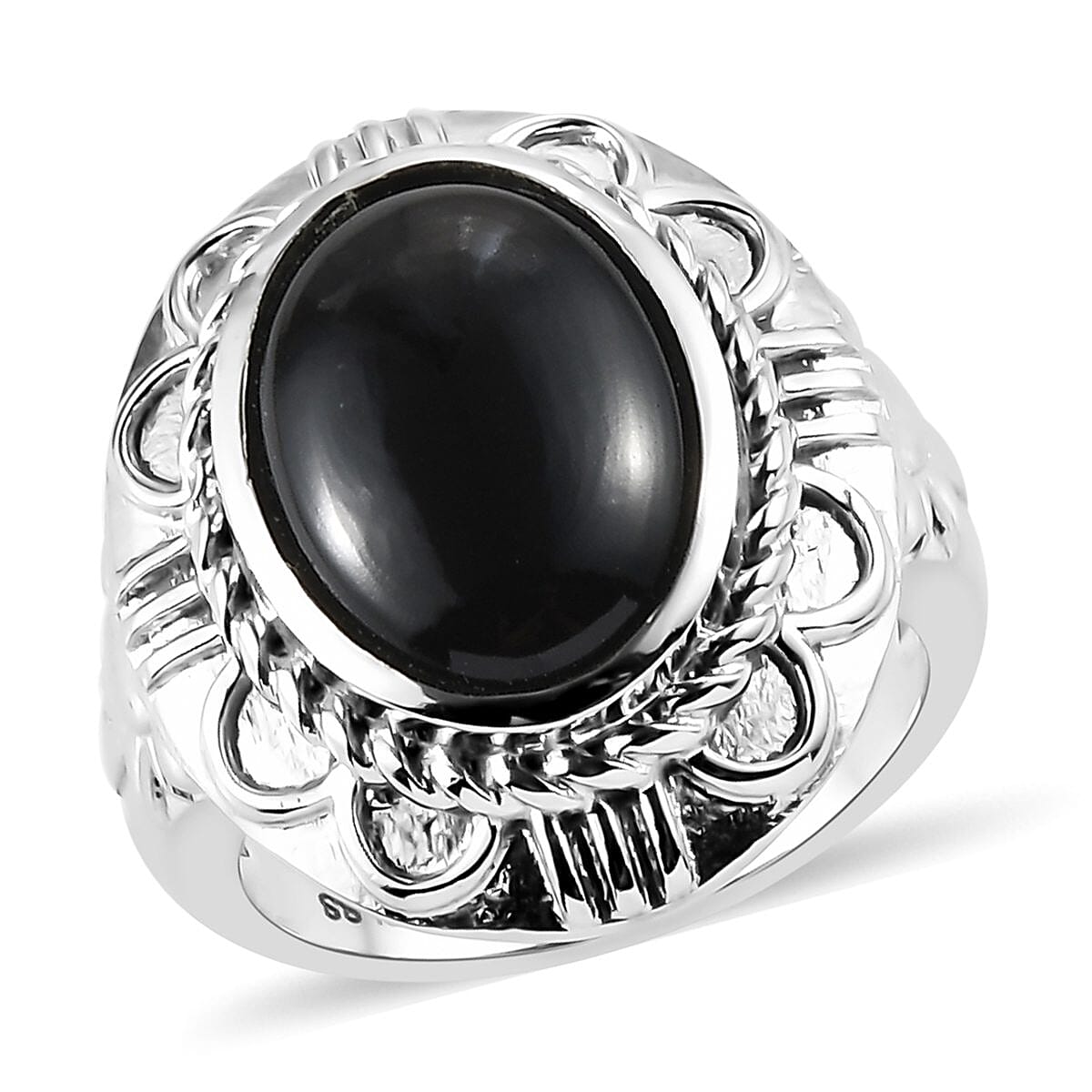 Black Onyx Solitaire Ring in Stainless Steel (Size 7.0) 5.15 ctw
