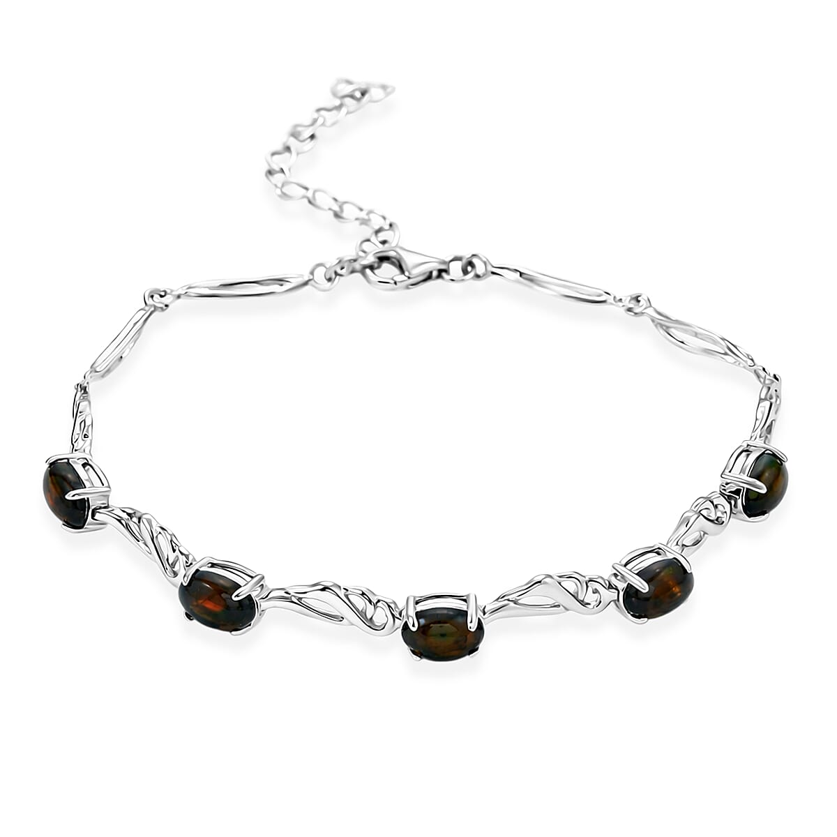 Black Opal 3.00 ctw Bracelet in Rhodium Over Sterling Silver (7-9In)