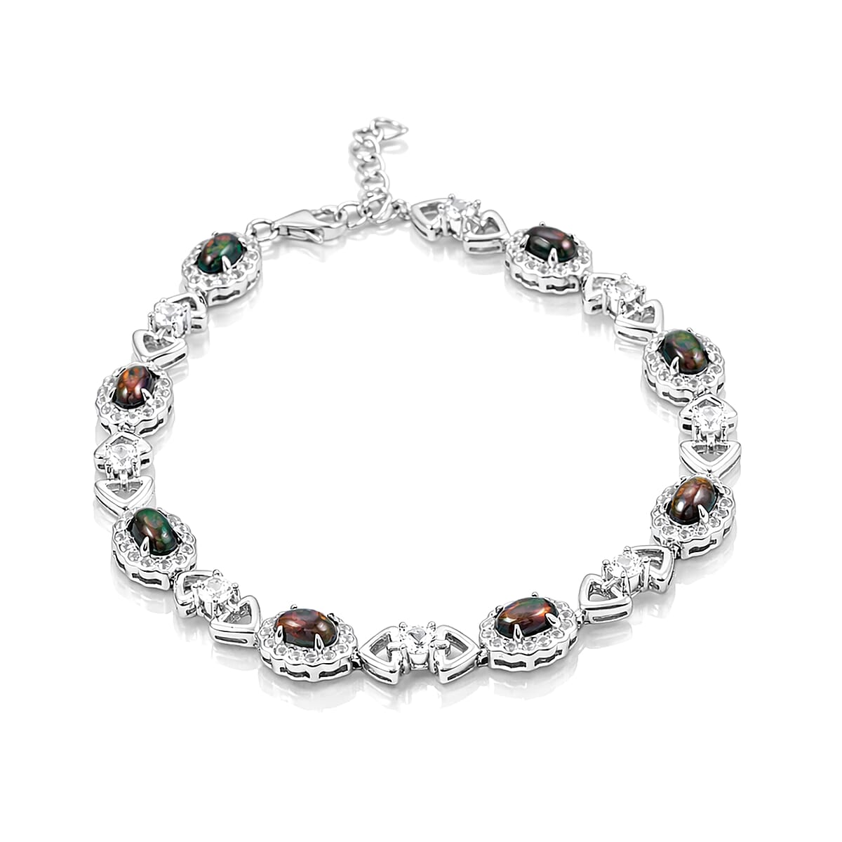 Black Opal and White Corundum 1.90 ctw Bracelet in Rhodium Over Sterling Silver (7-8In)