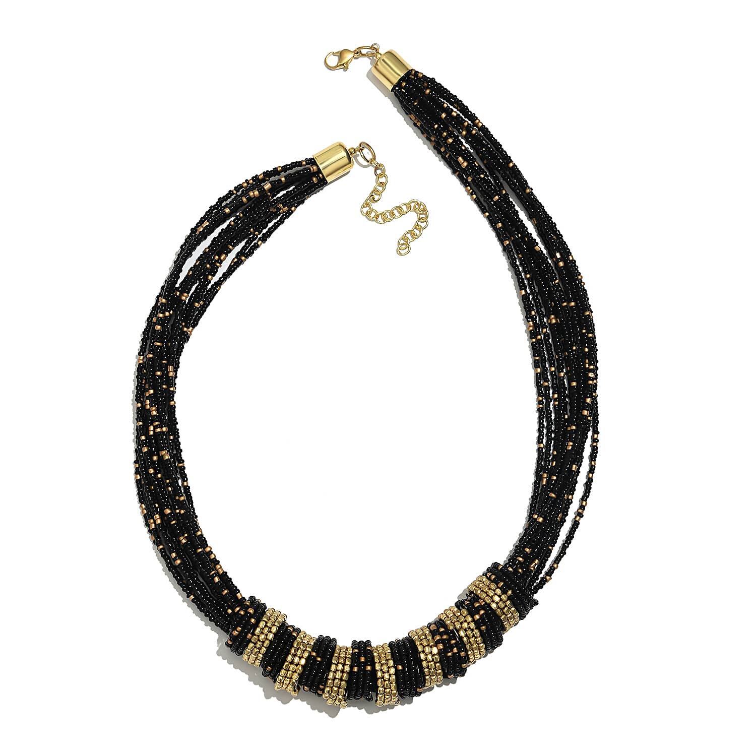 Black Seed Beaded Multi Strand Necklace (22 Inches) in Goldtone