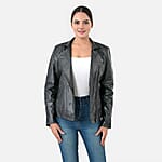 Black Shimmer 100% Genuine Lamb Leather Jacket - L
