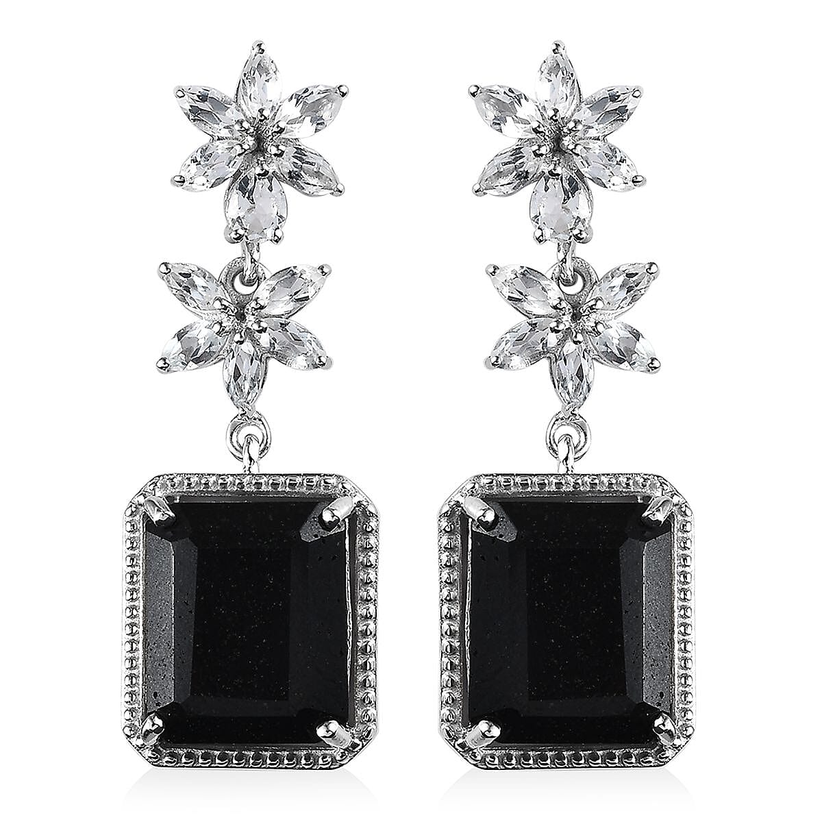 Black Tourmaline and White Topaz Dangle Earrings in Platinum Over Sterling Silver 16.85 ctw