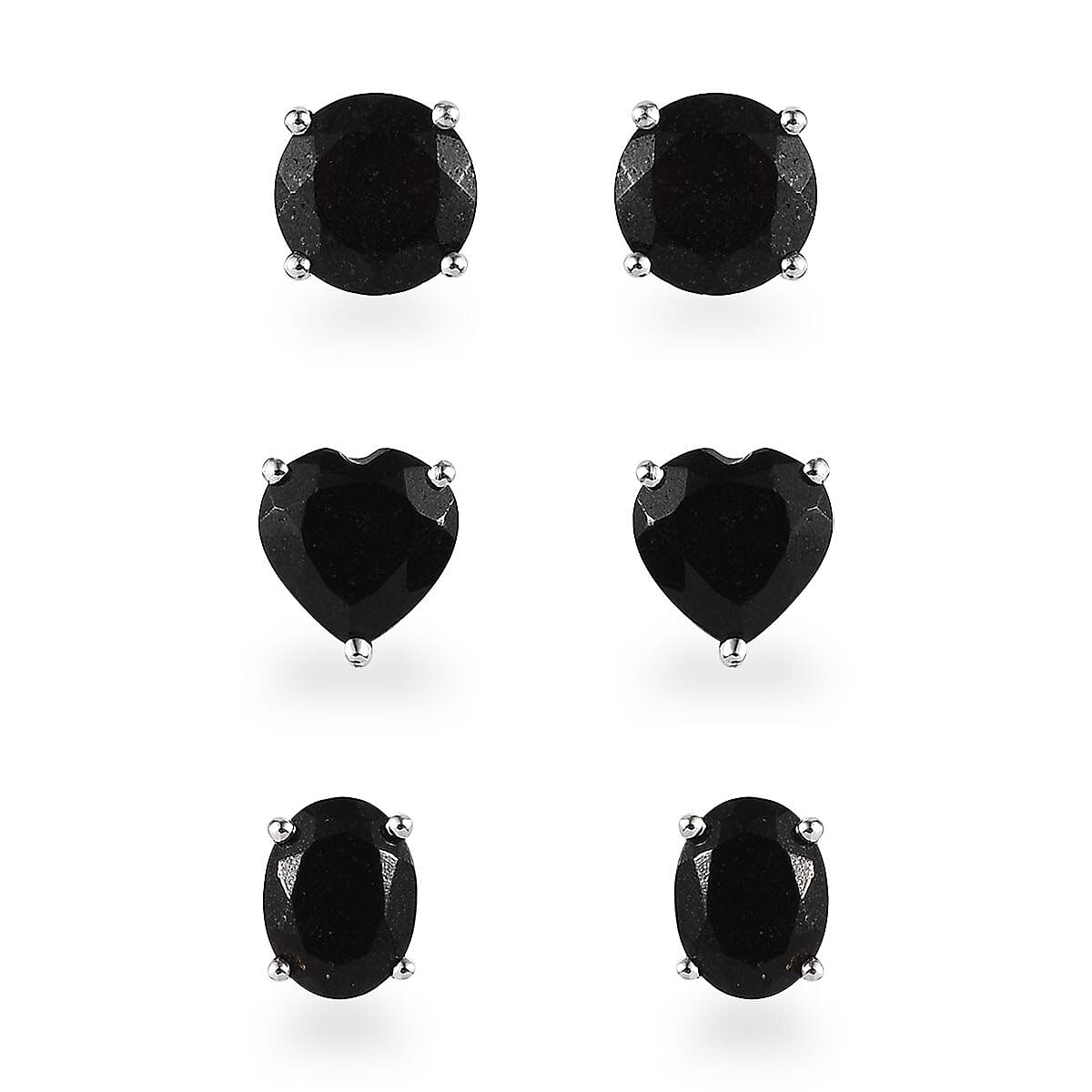 Black Tourmaline Set of 3 Stud Earrings in Platinum Over Sterling Silver 10.40 ctw