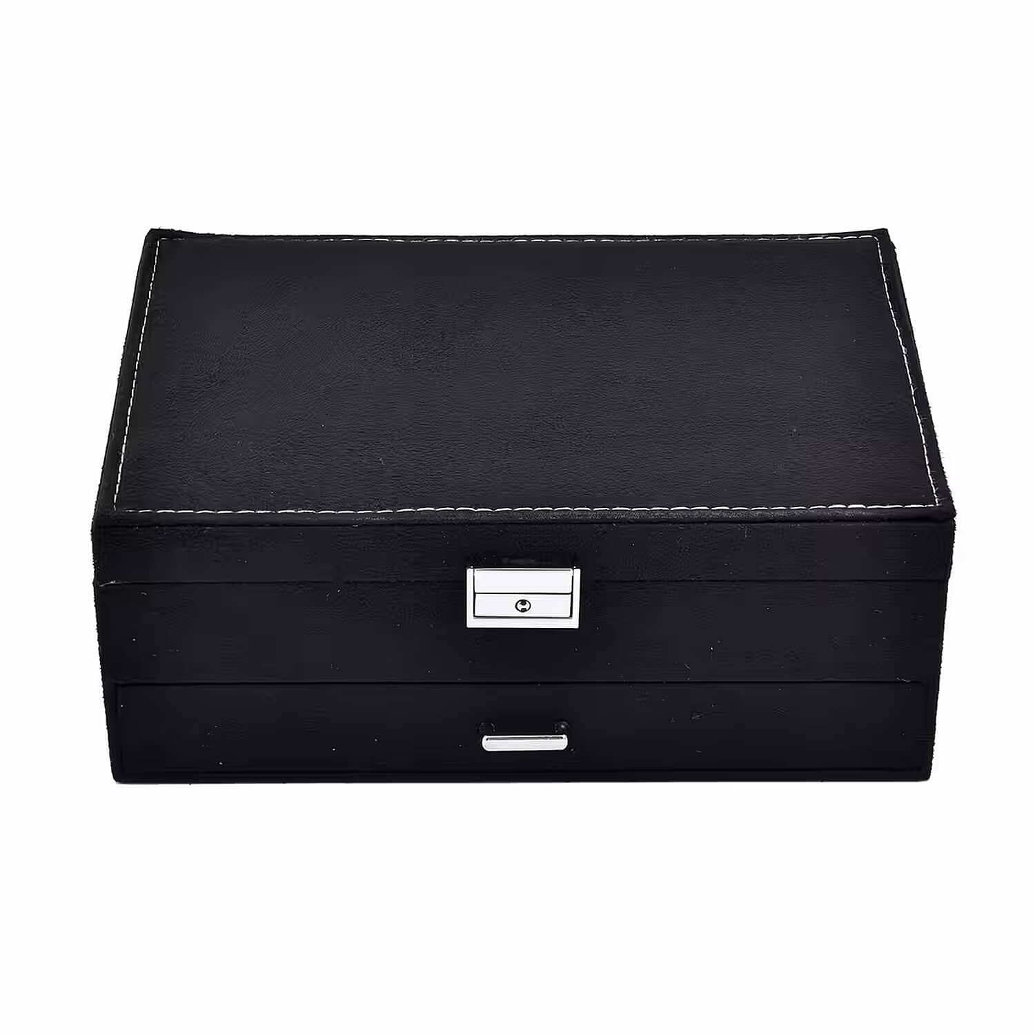 Black Velvet 2 Tier Anti Tarnish Jewelry Box with Lock and Key