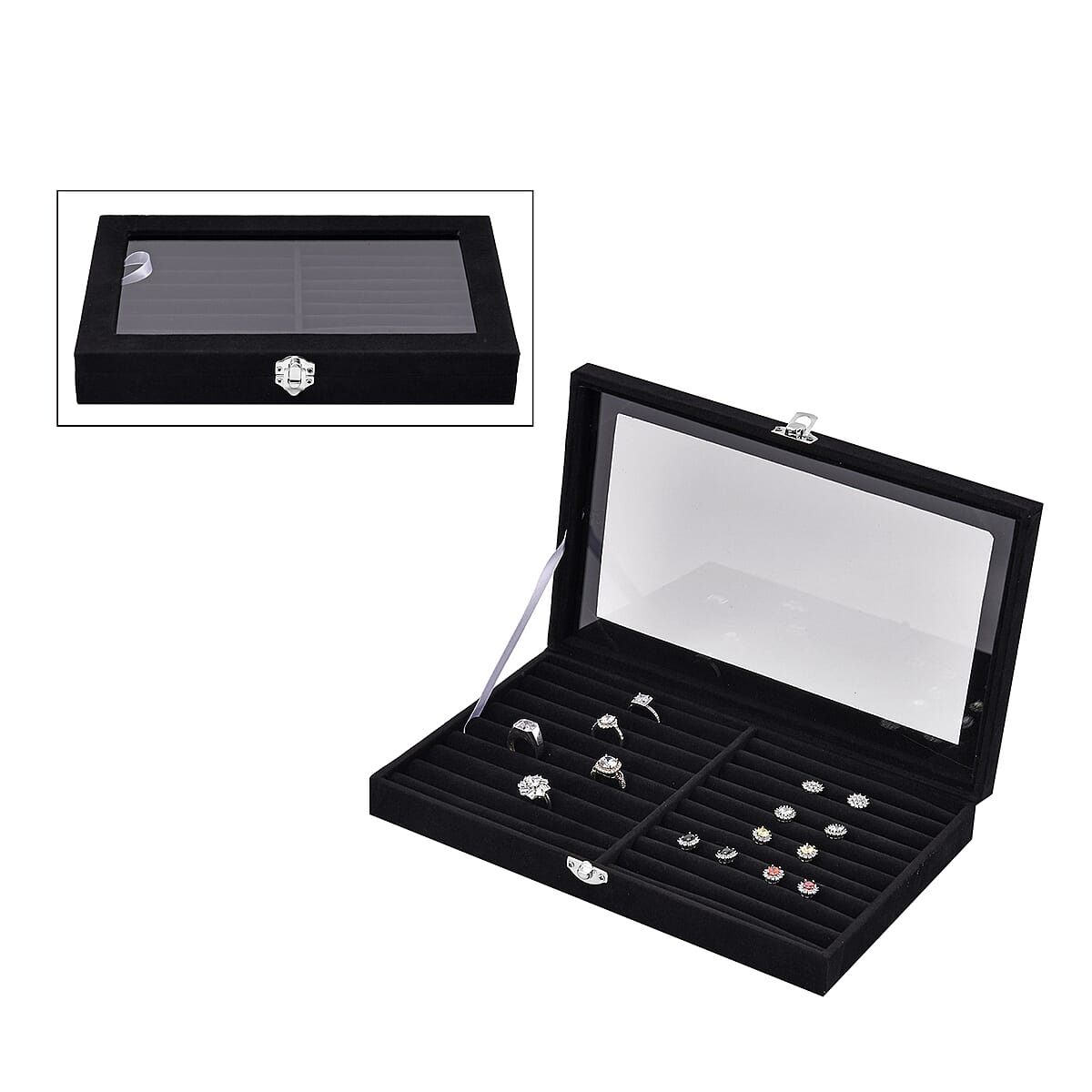 Black Velvet Ring Box with Glass Window (11.4"x7.3"x1.65")