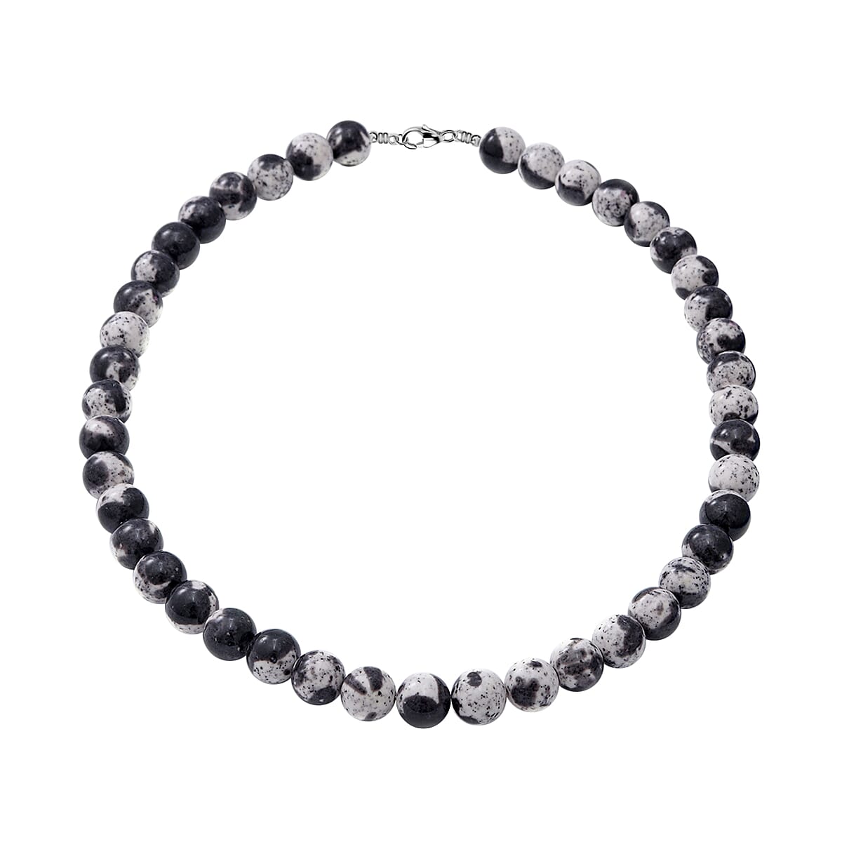 Black White Agate 10mm Beaded Necklace 18 Inches in Sterling Silver 250.00