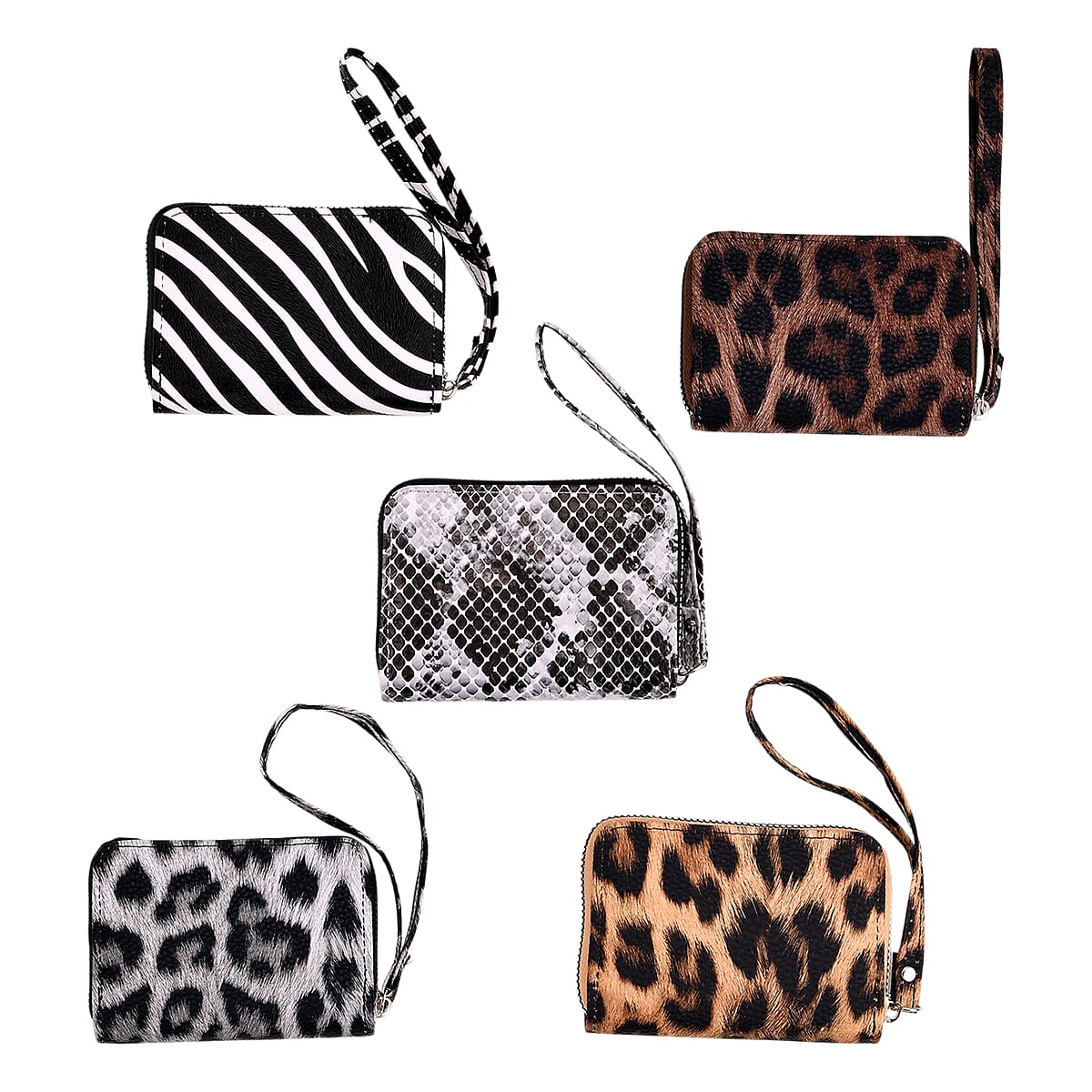 Black, White, Khaki, Coffee and Gold Faux Leather Set of 5 Card Holder with Wrist Strap
