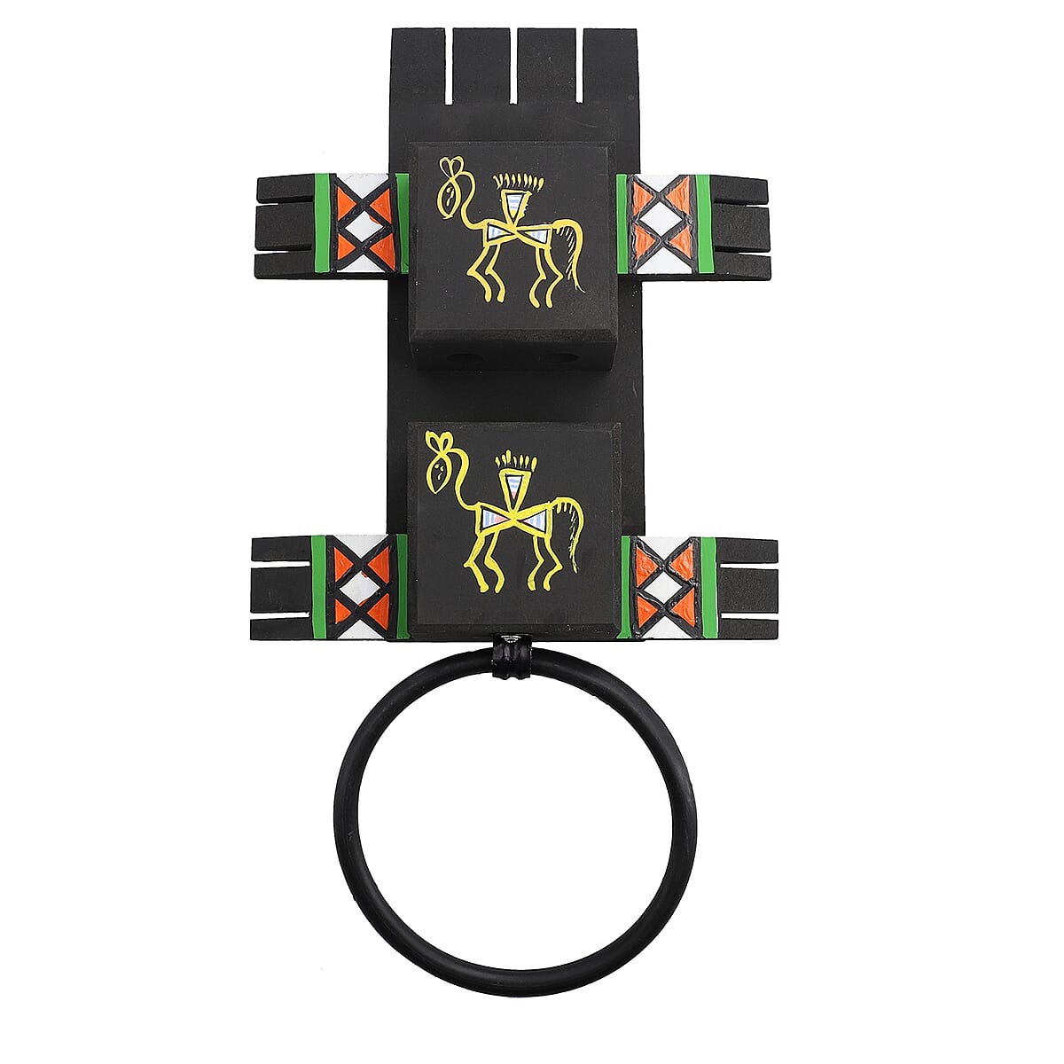 Black Wooden Hand Painted Traditional Warli Art (Napkin Holder, Toothbrush Holder with Hardware)